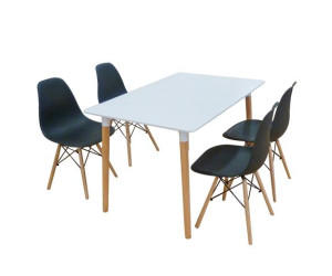 Set τραπεζαρίας εσωτερικού χώρου Loft. Το set αποτελείται απο 1 τραπέζι Randy σε διάσταση 120Χ80Χ72εκ. σε λευκό χρώμα και 4 καθίσματα Loft σε μαύρο χρώμα. Ένα μοντέρνο Set ιδανικό για την τραπέζαρια ή την κουζίνα σας.