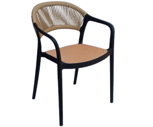 Σκελετός από polypropylene με σχοινί πλαστικό στην πλάτη και ψάθα τύπου βιέννης πλατική στο κάθισμα.