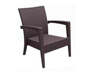 Πολυθρόνα MIAMI του οίκου Siesta σε χρώμα brown,από υψηλής ποιότητας πολυπροπυλένιο με ενίσχυση από υαλώδεις ίνες (fiber glass) για απόλυτη αντοχή. Χωρίς μεταλλικό σκελετό για μεγαλύτερη αξιοπιστία στον χρόνο. Είναι στοιβαζόμενη και διαθέτει UV protection για μέγιστη προστασία από τον ήλιο ώστε να μην αλλοιωθούν τα χρώματα. Κατάλληλη για εσωτερική και εξωτερική χρήση. Διατίθεται και μαξιλάρι.Πιστοποιημένο προιόν από τον Ιταλικό οίκο CATAS.