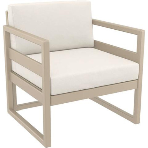 MYKONOS πολυθρόνα του οίκου Siesta σε χρώμα taupe με μαξιλάρια,κατασκευασμένη από πολυπροπυλένιο με 20% fiber glass για απόλυτη αντοχή στο χρόνο.Κατάλληλη για εσωτερική και εξωτερική χρήση,ιδανική επιλογή και για επαγγελματικούς χώρους.Διαθέτει UV protection για μη αλλοίωση των χρωμάτων.Μαξιλάρια διαθέσιμα σε χρώματα beige, dark grey, black και light brown.Πιστοποιημένο προϊόν από τον Ιταλικό οίκο CATAS.