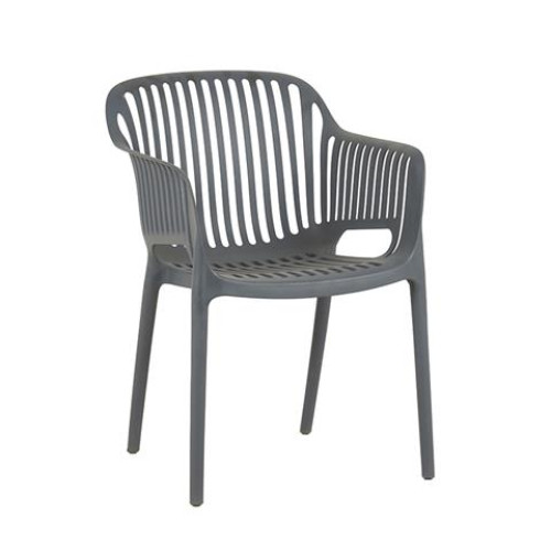 NOVA πολυθρόνα σε χρώμα dark grey κατασκευασμένη από πολυπροπυλένιο. Με ιδιαίτερο design στην πλάτη και το κάθισμα.Διαθέτει μπράτσα για μεγαλύτερη άνεση και είναι στοιβαζόμενη για εξοικονόμηση χώρου και εύκολη αποθήκευση.Κατάλληλη για εσωτερική και εξωτερική χρήση.