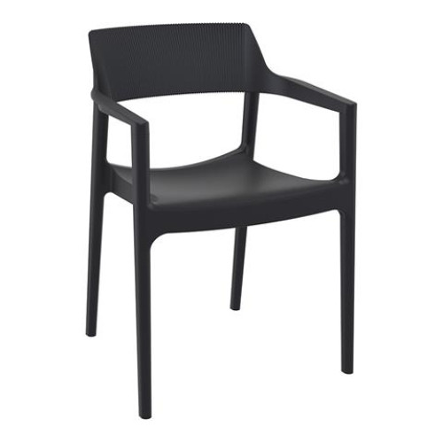 Tulum πολυθρόνα του οίκου Siesta σε χρώμα black με σχεδιασμό υψηλής αισθητικής στην πλάτη. Κατασκευασμένη από πολυπροπυλένιο με 20% fiber glass για απόλυτη αντοχή στο χρόνο. Κατάλληλη για εσωτερική και εξωτερική χρήση, είναι στοιβαζόμενη για εύκολη αποθήκευση, ιδανική επιλογή για επαγγελματικούς χώρους. Πιστοποιημένο προϊόν από τον Ιταλικό οίκο CATAS.