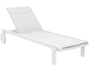 Ξαπλώστρα CASABLANCA του οίκου Siesta σε χρώμα white/white από υψηλής ποιότητας αλουμίνιο & πολυπροπυλένιο με ενίσχυση από υαλώδεις ίνες (fiber glass) για απόλυτη αντοχή και polyester fabric Serge Ferrari.Είναι στοιβαζόμενη,έχει ρυθμιζόμενη πλάτη 5 θέσεων,αντιολισθητικά πέλματα εμπρός και ρόδες από καουτσούκ.Κατάλληλη για εσωτερική και εξωτερική χρήση.Πιστοποιημένο προϊόν από τον Ιταλικό οίκο CATAS.
