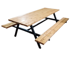 σετ 1 τραπέζι με 2 πάγκους σκελετός σιδερένιος με κάθισμα και καπάκι ξύλο μασίφ πεύκο