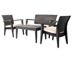 σετ 2 πολυθρόνες + 1 καναπές + 1 τραπεζάκι, με μαξιλάρια polyester σε polypropylene τύπου wicker