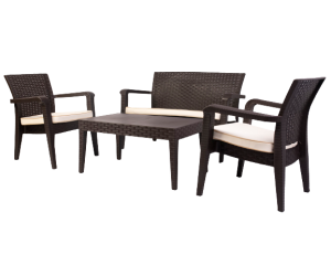 σετ 2 πολυθρόνες + 1 καναπές + 1 τραπεζάκι, με μαξιλάρια polyester σε polypropylene τύπου wicker