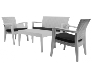 σετ 2 πολυθρόνες + 1 καναπές + 1 τραπεζάκι, με μαξιλάρια polyester σε polypropylene τύπου wicker