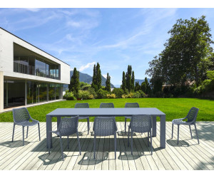 Set vegas τραπέζι 100X260/300 με 8 καρέκλες Air σε χρώμα dark grey του οίκου Siesta.Κατασκευασμένα από πολυπροπυλένιο για απόλυτη αντοχή. Ένα set με ιδιαίτερο desing και άριστη κομψότητα ιδανικό για επαγγελματική και για οικιακή χρήση.Κατάλληλο για εσωτερικό και εξωτερικό χώρο. Διατίθεται σε χρώματα white, taupe, dark grey και black.