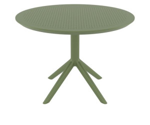 SKY τραπέζι Φ105 του οίκου Siesta σε χρώμα olive green.Κατασκευασμένο από πολυπροπυλένιο για απόλυτη αντοχή.Διαθέτει UV protection για μη αλλοίωση των χρωμάτων.Κατάλληλο για εσωτερική και εξωτερική χρήση.