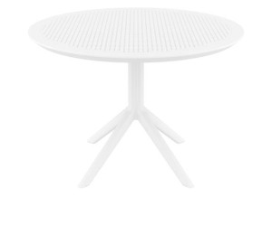 SKY τραπέζι Φ105 του οίκου Siesta σε χρώμα white.Κατασκευασμένο από πολυπροπυλένιο για απόλυτη αντοχή.Διαθέτει UV protection για μη αλλοίωση των χρωμάτων.Κατάλληλο για εσωτερική και εξωτερική χρήση.