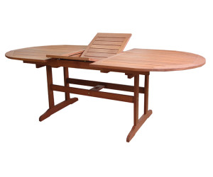 τραπέζι κήπου ξύλινο, οβάλ, σταθερή βάση, με εσωτερικό φύλλο επέκτασης 45cm, ξύλο MERANTI.