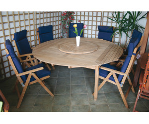 τραπέζι κήπου ξύλινο, στρογγυλό, σταθερή τετράγωνη βάση 140x140 cm με ημικυκλικές προεκτάσεις, ξύλο TEAK.