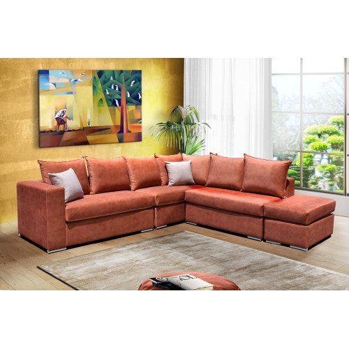 Σύστημα καναπέ αποτελούμενο από τέσσερα (4) τεμάχια, με δυνατότητα τοποθέτησης της γωνίας αριστερά ή δεξιά, εύκολα και γρήγορα, με μια απλή μετακίνηση των τεμαχίων.