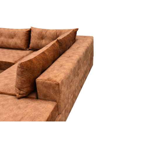 Γωνιακός καναπές με τραβήγματα στο σκελετό και τα μαξιλάρια πλάτης.