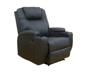 VERA πολυθρόνα massage με επένδυση από μαύρο PU.Η ένταση για την λειτουργία μασάζ είναι ρυθμιζόμενη με 2 επίπεδα προσφέροντας σας χαλαρωτικό μασάζ με παλμικές δονήσεις.Διαθέτει 8 σημεία μασάζ με 5 προγράμματα και τηλεχειριστήριο για να ρυθμίζετε το πρόγραμμα που επιθυμείτε,θήκες για ποτήρια στα μπράτσα και ρυθμιζόμενο καθ΄ύψος μαξιλάρι.Ρυθμίζοντας την πλάτη και το υποπόδιο σας δίνει την δυνατότητα να χαλαρώνετε.Η πολυθρόνα διαθέτει χρονοδιακόπτη που σταματά αυτόματα το μασάζ μετά από 15 λεπτά.